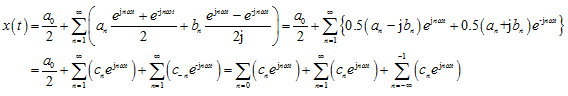 Fourier series can be expressed by complex numbers using Euler’s formulas: ejθ = cosθ + j sinθ and e-jθ = cosθ - j sinθ this gives and