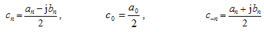 Above expressions give relationship between the real and complex Fourier coefficients, where the complex coefficients are given by