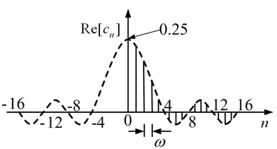 Figure 14.19 (b) The line spectrum and an envelope (dashed line) of a square wave (complex form)