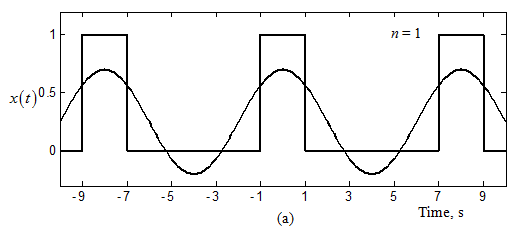 x(t) = 1 for 0 ≤ t ≤ 1 and 7 ≤ t ≤8