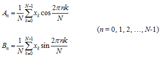 where An and Bn are quantities defined by Xn = An + jBn. Further, the inverse real discrete Fourier transform is given by
