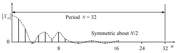 The coefficients Xn therefore just repeat themselves for n > (N-1), so that if we plot the magnitudes