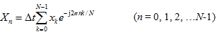 Different types of definition of DFT and IDFT are used, depending upon personal preference. Some use the following definitions, in which the magnitudes of Xn coincide with that of Fourier transform X(ω) in Figure 14.23(b).