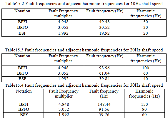 Table15.2 Fault frequencies and adjacent harmonic frequencies for 10Hz shaft speed