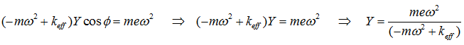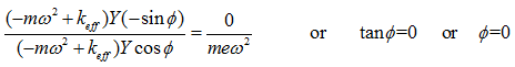 where Y is the amplitude of displacement, ω is the spin speed of the rotor, and Φ is the phase lag of displacement with respect to the unbalance force (normally in absence of damping the phase will be zero). On substituting equation (2.9) (noting