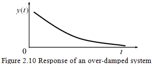 : Exponents of terms within the square bracket in equation (2.20) are real numbers, which means there would not be any harmonic functions. Hence, no oscillation is possible and it is called the over-damped system (see Figure 2.10).