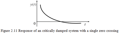 For this case either no oscillation (similar to Fig. 2.10) or for specific initial conditions single crossing of the zero response axis is possible. Figure 2.11 shows a response of the critically damped system with a single crossing.