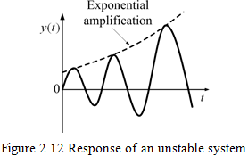 = 0: the undamped system. For all the three cases, the integration constants A and B are obtained from two initial conditions. Figure 2.12 shows a response of an unstable system with