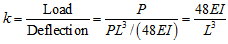 The transverse stiffness, k, of a simply supported shaft is expressed as