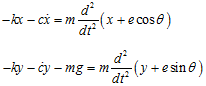 For the case θ = ωt, i.e., when the disc is rotating at a constant spin speed, the Jeffcott rotor model reduces to two-DOF rotor model. Physically it means that only the transverse vibration is considered and the torsional vibration is ignored. By considering the static equilibrium as the reference for the axis system, the gavity effect could be neglected. For the case when the reference axis is at bearing axis position then gavity force would give a constant deflection along with the unbalance response. The non-linear effect of gravity will be considered when we will discuss the sub-critical speed phenomenon in Chapter 11. Hence, equations of motion in the x and y directions, from equations (2.26) and (2.27), can be written as