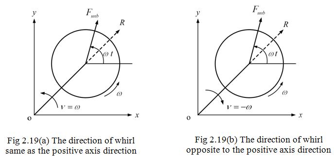 For the direction of whirl (R) opposite to the axis system as shown in Figure 2.19(b), the following relationship holds