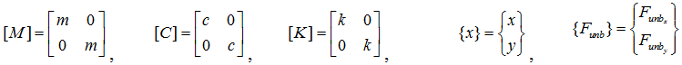 where [M] is the mass matrix, [C] is the damping matrix, [K] is the stiffness matrix, {x(t)} is the response vector, and