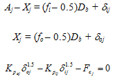 Equations (3.72)-(3.74) can be solved simultaneously for Xj, δij, δoj at each ball angular location for a given assumed value of δr using the Newton-Raphson numerical method. The radial displacement δr can be obtained by the following equation, which should be satisfied for the entire bearing.