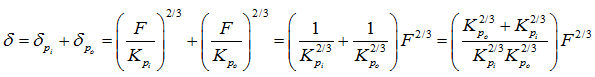 The total deformation, δ, at a single rolling element location is given by (noting the form of equation (3.3) for each of the contact points at the inner and outer raceways)