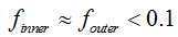 where r is the radius of curvature of the raceway in mm with subscripts i or o for the inner raceway or outer raceway, respectively.