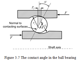 For a given load, the size of the contact area (i.e., the elastic deformation between the rolling element and the raceway) determines the magnitude of stresses in the bearing components. In case of a ball bearing the contact area between the rolling element and the raceway is zero when no load is applied. It is a case of the point contact. For two bodies with point contact (with a load the point contact would become an area contact with the contact area (of very small quantity) as an ellipse for the ball bearing), made of same material and subjected to a compressive load F, from the Hertzian contact theory, we have