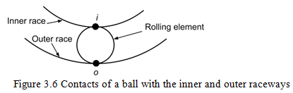 where subscripts i and o represent the inner and outer raceways. Equation (3.4) can be rewritten as