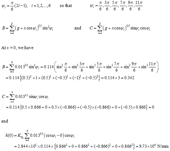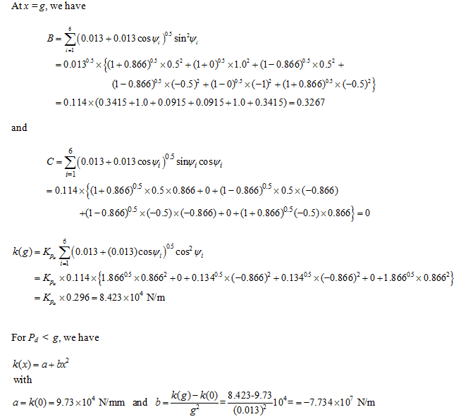 Finally, the bearing internal dimensions are obtained as: ri = ro = 3.09 mm, Db = 6 mm, Z = 6, di = 14 mm, do = 26 mm, Dm = 20 mm and g = -13 X 10-3 mm. Based on these dimensions now the following parameters, which will be used for finding the bearing stiffness, can be estimated
