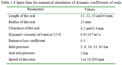 In this subsection, numerical results of dynamic coefficients of seals are presented for the rotor speed up to 50,000 rpm. The input data are for the present numerical simulation is given in Table 3.8
