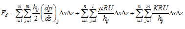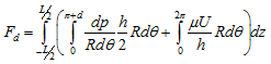The first term in the bracket is the pressure-induced term and the second term is the velocity-induced term. The total drag force, Fd, on the journal is then given by (s = Rdθ)