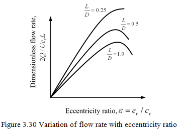 In case of both the infinitely short and infinitely long bearing there is a lubricant pressure variation in the axial direction for causing a flow of lubricant out of the ends of the bearing. This flow rate, allowing for both ends of the bearing, is given by basic fluid mechanics theory as
