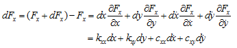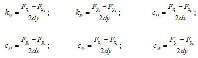 Similarly, values of the other stiffness and damping coefficients may be evaluated by imposing small variations in dy, and