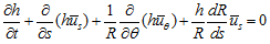 The geometry of the seal annulus which is filled with fluid is sketched in Figure 3.37, and is described by coordinates of the meridian of the gap as given by z(s) and R(s), 0 < s < L, where the coordinate, s, is measured along that meridian and t is the time. The clearance is denoted by h(s, θ, t), where the unperturbed value of h is δ(s). Equations governing the bulk flow are averaged over the clearance. This leads to a continuity equation of the form