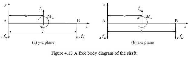 It should be noted that bearings are modelled as a point connection with the shaft and only linear displacements is considered since they support mainly radial loads. Bearing forces have the following form