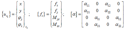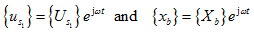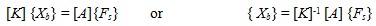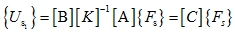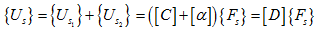 where {Us} contains absolute displacements of the shaft at the location of the disc. Equation describes the displacement of the shaft at the disc under the action of sinusoidal forces and moments applied at the disc (hence the matrix [D] is similar to the influence coefficient matrix). Equation can be written as
