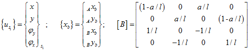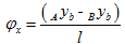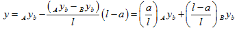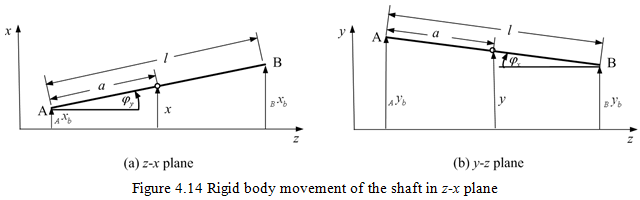 Equation (4.49) relates the shaft end deflections to the reaction forces and moments on the shaft by the disc. The deflection at the location of the disc due to movement of shaft ends can be obtained as follows. Consider the shaft to be rigid for some instant and let us denote shaft end deflections in the horizontal direction to be Axb and Byb at ends A and B, respectively, as shown in Figure 4.14. These displacements are assumed to be small.