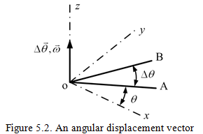 Let in Fig. 5.2, OA rotates about the z-axis in the x-y plane and OB is the position it takes after an infinitesimal time interval. Let Δθ be the infinitesimal angular displacement of OA, it is the angular displacement vector along z-axis. Similarly, the angular velocity, angular acceleration and angular momentum are also vector quantity. A change in the magnitude and direction of angular velocity results in the angular acceleration.The gyroscopic moment can be understood using the principle of angular momentum.
