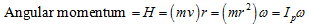 where Ip is the polar mass of inertia of particle of mass, m, about it’s axis of rotation o; and ω is the angular velocity of link OA. The direction of the angular momentum will be same as the angular velocity.