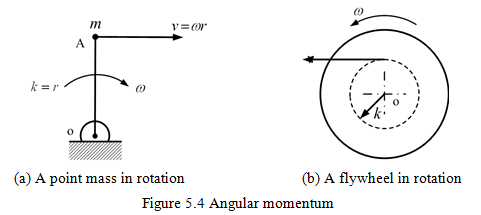 Referring to Figure 5.4(b) in which a flywheel of the mass m and of the radius of gyration k is rotating with an angular speed of, ω, the angular momentum of the flywheel is given as