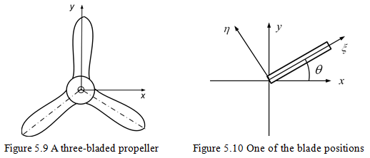 From equations (5.24) and (5.28), we can conclude that for the multi-bladed propeller with the number of blades equal to three or more is equivalent to a plane disc with the polar mass moment of inertia
