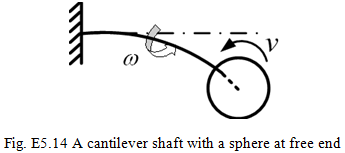 Exercise 5.14 Obtain the transverse critical speed for the forward synchronous motion of a cantilever shaft with a sphere (of the mass m, and the radius, r) at the free end (Fig. E5.14). It is assumed that the shaft free-end is connected to the centre of the sphere, and it is not interfering motion of the sphere at any other point of the sphere. The shaft modulus of rigidity of the shaft is EI and its length is l. The spin speed is ω and whirl frequency is