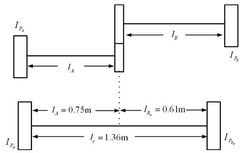 It is assumed that equivalent shaft (i.e., the shaft B) has the diameter same as that of the reference shaft (i.e., the shaft A). The equivalent polar mass moment of inertia and the torsional stiffness can be written as