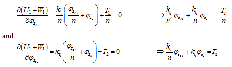 where φzg1 and φzg2 are rotational displacements of gears 1 and 2, respectively. Since φzg2 is defined in terms of φzg1, we can eliminate φzg2 from the state vector of the system. It should be noted we are not obtaining an equivalent gear system as such as obtained earlier.