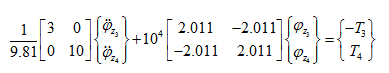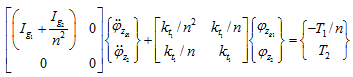 which is the equation of motion of the gear-pair element. It should be worth mentioning that φzg2 is the actual rotational displacement of right hand end of the shaft that is attached to gears 2. Hence, no scaling is required of the mode shapes obtained from the above formulation. Following examples will illustrate the use of the gear-pair element for the geared and branched systems by using FEM.
