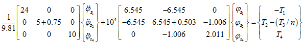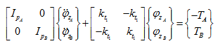 Equations of motion for element (1) can be written as (on neglecting the inertia of the shaft)