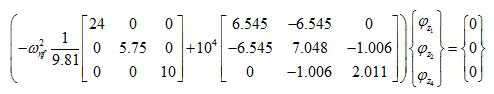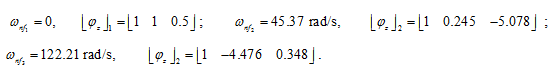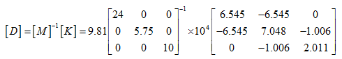 From the eigen value analysis, natural frequencies and mode shapes can be obtained from the matrix [ D ] and are given as