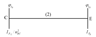 Element (2): Figure 7.27 shows element (2) with nodal variables. The actual nodal variable at gear C is related with the nodal variable of gear B, hence nodal variable of gear B is used. This affects both the mass and stiffness matrices as well as the internal torque vector.