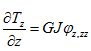 [ Hint : The free body diagram is shown in Fig. E7.1, where Tzc (z, t) is the distributed external torque on the rod, Tz (z, t) = GJφz, z is the reactive torque at the axial location of z , and