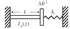Exercise 7.2 A cantilever rod has a thin rigid disc (of mass M with r as the radius of gyration) at free end and also it is supported by a torsional spring of stiffness k t at the free end (See Fig. E7.2). Let us taje GJ as modulus of rigidity, L is the length, Ip ( z ) = ρJ as the mass polar moment of inertia per unit length, ρ is the mass density, and J is the polar area moment of inertia. Write down equations of motion and boundary conditions for torsional vibrations. Obtain the expressions of frequency equations and mode shapes in the closed form.