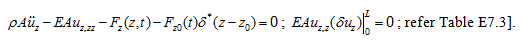 Exercise 7.3 Consider a rod with E as the Young's modulus, A is the area of the cross section, L is the length, m ( z ) = ρ A as the mass per unit length, and uz ( z ) is the axial displacement at a position z . Write down equations of motion and boundary conditions for axial vibrations . Obtain the expressions of frequency equations and mode shapes in closed form for the following boundary conditions