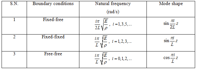 Table E7.3 Natural frequency and mode shapes for axial vibrations of rods