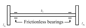 Fig. E7.2 A cantilever rod with a rigid disc and a toriosnal spring at free end.