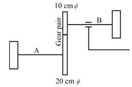 Exercise 7.9 Obtain torsional natural frequencies and mode shapes of an epi-cyclic gear train as shown in Figure E7.9. Find also the location of nodal point on the shaft. The gear mounted on shaft ‘B' is a planetary gear and the gear on shaft ‘A' is a sun gear. Consider the polar mass moment of inertia of the shaft, the arm, and gears as negligible. Shaft ‘A' has 5 cm of diameter and 0.75 m of length and shaft ‘B' has 4 cm of diameter and 1.0 m of length. Take the modulus of rigidity of the shaft G equals to 0.8 × 1011 N/m2 , the polar mass moment of inertia of discs are IA = 24 Nm2 and IB = 10 Nm2 . Use FEM. [ Hint : Obtain the gear ratio n AB between shaft A and B using epi-cyclic gear train, now obtain the equivalent two mass rotor system for which closed form expressions of natural frequencies are available]