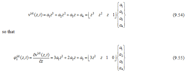 ) at nodes 1 and 2 of the element are specified, and these give four boundary conditions for the element from which four constants in the shape function can be determined uniquely. Let us assume the transverse displacement v(z) to be a cubic polynomial, which has four coefficients as unknown, to predict the displacements within the element as