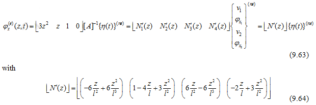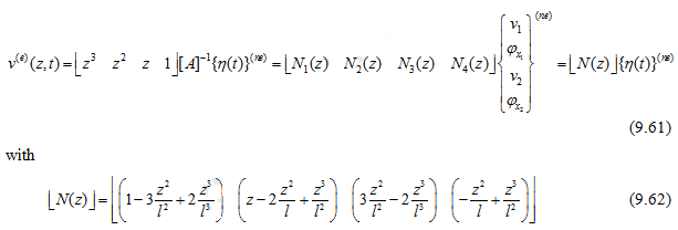 are constants to be determined from boundary conditions of the element as shown in Figure 9.5.Equation (9.54) is expected to satisfy the governing differential equation (9.47) of the beam. In addition the cubic displacement shape function satisfies the continuity condition of both the translational and rotational displacements at nodes, which will be shown subsequently.