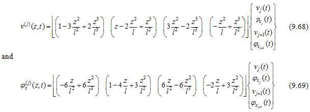 From equations (9.61)and (9.63), the translational and rotational displacements for jth element can be written as